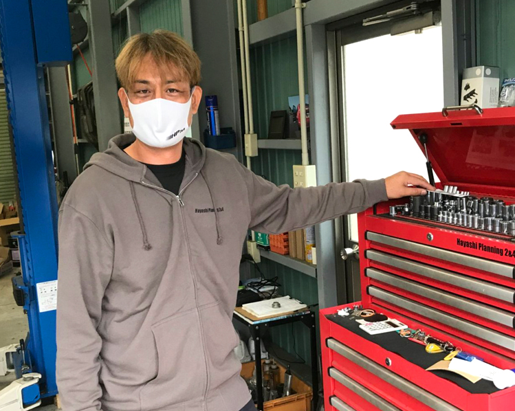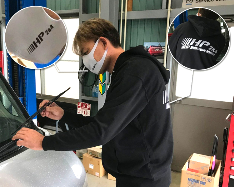 現在ユニフォームマスクは、鈴鹿で車・バイクの車両販売および整備をされているハヤシプランニング2&4様でもご使用いただいております。ハヤシプランニング2&4様では同時にご依頼のありました店名入りパーカーと共にユニフォームとしてマスクを活用していただいておりますので、写真にてご紹介させていただきます。