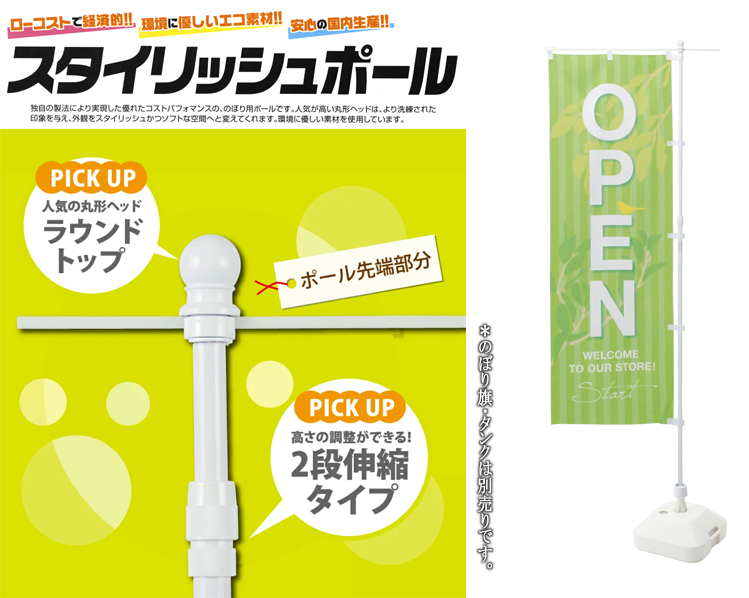 のぼりポールは消耗品です。また、それ自体に宣伝効果はありません。